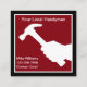 Bold cool home Handyman services theme business cards presented on square business card stock with hammer graphic and list of services you can alter on the flip side.