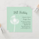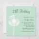 A fluffy and delicate dandelion decorates this 21st birthday party invitation on a mint background. It is shown on the basic paper; however I recommend the weight and texture of the linen paper.
