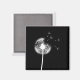 A dandelion with blowing seeds decorates this magnet on a black background, making it perfect as a token of good wishes.