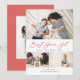 Featuring modern brush script in red with 3 of your photos. Comes with a photo on the back as well.