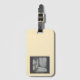 The Luggage Tag features a calm, sand-like design in warm beige and natural tones, reminiscent of fine beach or desert sand. A subtle artistic illustration is printed: a young woman sitting cross-legged in a classic yoga pose.