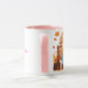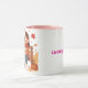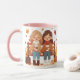 Diese liebevoll gestaltete Tasse zeigt zwei fröhliche Freundinnen auf einer Bank – gemeinsam lachen, quatschen und Kaffee trinken unter herbstlichen Blättern.