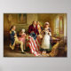 This vintage American History painting features Betsy Ross showing the American flag to George Washington, Robert Morris, and Major Ross. Celebrate American History with this digitally restored vintage poster product from The War Is Hell Store.