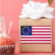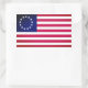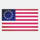 The Betsy Ross flag is a reconstructed early design for the flag of the United States, which is conformant to the Flag Act of 1777 and has red stripes outermost and stars arranged in a circle. These details elaborate on the 1777 act, passed early in the American Revolutionary War, which specified 13 alternating red and white horizontal stripes and 13 white stars in a blue canton. Its name stems from the story, once widely believed, that shortly after the 1777 act, upholsterer and flag maker Betsy Ross produced a flag of this design.