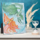 Original watercolor painting by Sandra Gale of two beautiful Siamese Fighting fish, or betta fish swimming together. Painted in cool pastel colours, these majestic fish have flowing fins that float among water bubbles while they duel and play.