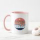 better days ahead Mug. White Mug, Pink Handle, Positive Message, Colourful Design, Motivational Quote. A white mug with a pink handle and interior, featuring a vibrant design with the text “BETTER DAYS AHEAD” in stylised lettering. The background includes shades of blue, pink, and orange, along with an illustration of a sun, conveying a message of optimism and hope.