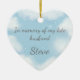 This morbidly funny ornament has a scene of heavenly blue sky, dreamy clouds, sparking stars and the words "In Memory of my late husband [insert name]." The back of the ornament gives yoh a surprise with the words "Better late than never!" You have the option of inserting a custom photo of your spouse (or fantasy spouse) looking down on you from heaven.