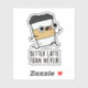 Better Latte Than Never Funny Coffee Pun features a cute latte coffee running. Perfect pun gift for family and friends who love cute coffee latte puns.