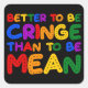 "Better to be cringe than to be mean" in rainbow stitched letters. A reminder to keep doing what you love no matter what others think !