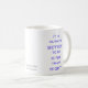 This mug designed by artist Anne Harwell in perwinkle type reads "It is better to be kind than right".