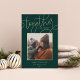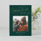 A simple and heartfelt holiday photo card that sets your square photo on a forest green background with a sweet message. "Together is our favorite place to be" appears in gold foil script and block lettering, with your custom holiday greeting, family name, and the year beneath. A simple and elegant choice with gold foil accent printing for your Christmas 2022 cards.