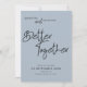 A modern informal design to ask your guests to save your wedding date with a handwriting style black set script for Better Together in the centre to coordinate with the "and" in the same set script between your names. The rest of the text can be easily personalised. A darker blue background is on the back. Text and background colours can be changed to a different colours if you wish via the customise further option.