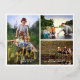 Modern three photo collage holiday postcard. Calligraphy hand lettering in gold foil overlaying photo.