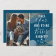 Fun christmas flat holiday card featuring a blue background, abstract circles, a sprinkle of faux gold glitter, and the funny quote "this year has to be better, right!?", family signature, and the year.
