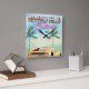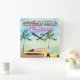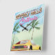 Beverly Hills holiday poster, 1980s Beverly Hills California travel or vacation print featuring a yellow american sports car.