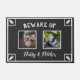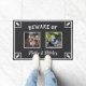 Funny welcome doormat in black and white with bunny paw prints for a two rabbit family, urging your visitors to beware of your beloved fluff balls. Add your pet rabbits' names and photos. This funny and adorable welcome door mat features a personalised design with your pet rabbits' names and photos, as well as bunny paws. It's the perfect way to warn your guests about the furry friends that await them inside. Order your personalised Beware of the Pet Rabbits! door mat today and add a touch of whimsical fun and humour to your home décor.