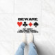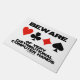 Duplicate bridge players who encounter very distributional "computer hands" at bridge tournaments will enjoy this bridge saying doormat featuring the four card suits along with the following warning: "Beware Of Very Distributional Computer Hands". Memorable doormat with sound bridge advice for any avid bridge player!