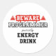 Beware: Programmer Powered By Energy Drink | Coder Classic Round Sticker