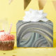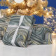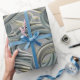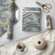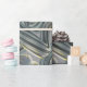 Overlapping dimensional rings in silver turning to gold tips. (This version of the design repeats uniquely every 18" wide, to best match how the wrapping paper rolls are printed.)