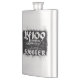 The product is a good size and came exactly as it was pictured. The lid is not attached to the flask, which could be dangerous on drunken nights... The print came out surprisingly well and looks very sharp. Would definitely recommend.