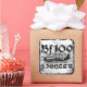 The size is perfect and the design has a softness with the beautiful flowers around the edges. The black lettering on the white background is sharp. It stands out beautifully. I love the Mixture of font styles as it catches the eye.