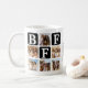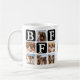 Get ready to show off your bond with a one-of-a-kind BFF mug. This modern design features a grid collage with 6 photos, all in curved corner squares. And don't worry about the colour - the "BFF" text and blocks can be customised to fit your unique style. Plus, right in the centre of the mug is the title "BEST FRIENDS FOREVER" with a customisable friendship quote. Make it your own and cherish your friendship every time you sip your coffee.