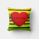 BG Stripes Pattern coloured V + red heart Cushion