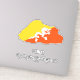 Bhutan Flag Charming Patriotic Map Sticker in the outline of the Bhutan map. The map is infused with the pattern and the colours from the Bhutan national flag. Small stickers with the country name are also included. Text is fully customisable using "Customise it!" feature. Bhutan map sticker is the perfect sticky gift that can be placed anywhere your heart desire. © 2024 CoutriesOfTheWorld