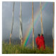 Bhutan, Gangtey village, Rainbow over two monks Tile