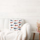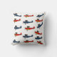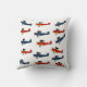 cute red and blue bi planes in a toss repeat pattern on a white pillow.