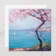 This design features a painting by the Romanian Post-Impressionist artist Kimon Loghi (1871–1952). It depicts a beauty beach scene in the fashionable French city of Biarritz, which is located on the Bay of Biscay, on the Atlantic coast of southwestern France. It is a luxurious seaside tourist destination known for its elegant lifestyle and glorious beaches. In the foreground of the image can be seen a large cherry blossom tree. There is yacht sailing on the water.