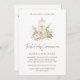 This design features a watercolor illustration of a Candle with a Cross and Bible, surrounded by greenery leaves and whitish flowers.