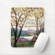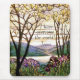 Gorgeous vintage Tiffany Stained Glass Window Reproduction of a nature scene with a Bible Verse: I have overcome the world! -Jesus. Mousepad.