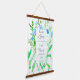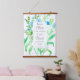 A hanging tapestry featuring a Bible scripture from the book of Isaiah 12:2 KJV and decorated light blue flax watercolor wildflowers and green stems.