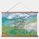 A hanging tapestry featuring a Bible scripture from the book of Isaiah 43:19 KJV and decorated with a watercolor painting of a rickety fence and layers of rolling desert hills with snowcaps on the mountains in the distance.