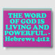 THE WORD OF GOD IS LIVING AND POWERFUL. - Hebrews 4:12. From the Geneva Study Bible: For the word of God is quick, and powerful, and sharper than any two-edged sword, piercing even to the dividing asunder of soul and spirit, and of the joints and marrow, and is a discerner of the thoughts and intents of the heart.