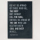 "Do not be afraid of those who kill the body but cannot kill the soul. Rather, be afraid of the One who can destroy both soul and body in hell." - Matthew 10:28 Christian Bible verse from the New Testament