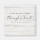 "I can do all things through Christ who strengthens me" typography Bible Verse of Philippians 4:13 in a clean and elegant script and text, on light wood textured background.
