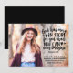 Announce your high school graduation to your family and friends in style with this modern Christian photo announcement card.This design template features your photo with a translucent overlay on the right with a bible verse in black script typography that reads "God has more in store for you than you can even imagine. Ephesians 3:20" with your class/year, name, school name, and date for you to personalise. Please use a photo where you are positioned on the left for best results. Congrats on your graduation! Designed by artist Susan Coffey.