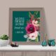 Decorative Bible quote with pink & fuchsia flowers on a dark green background and handwritten font.