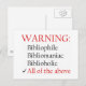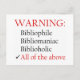 Are you a bibliophile (one who loves books)? A bibliomaniac (one who's crazy about books)? Or a hard-core biblioholic (one who's addicted to books)? Or perhaps you're like us: all of the above. If so, give fair warning to librarians and bookstore owners with our bold red and black design!