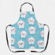 The image is a cute pattern featuring smiling Bichon Frise puppies on a blue background with playful bone and paw print accents.