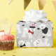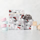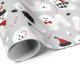 Cute bichon frise Christmas dogs in argyle sweaters and Santa hats sit, stand and rollover with candy canes and ornaments on a light grey background.