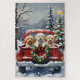 Bring fluffy, cheerful charm to your holiday season with this adorable Bichon Frise Christmas design! This festive scene features three cute, white-puffed Bichon Frises sitting happily in the back of a classic red pickup truck, nestled in a picturesque snowy winter forest. The vintage truck is adorned with a vibrant Christmas wreath, twinkling with red and gold ornaments and warm, glowing lights. Soft snowflakes gently fall, enhancing the winter wonderland effect. A decorated Christmas tree in the background completes this heartwarming picture, making it an ideal Christmas gift for any Bichon Frise owner, dog lover, or admirer of festive and lovable dog art. This design perfectly captures the joyful spirit of the holidays.