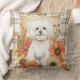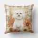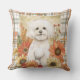 Bichon Frise Dog Fall Watercolor Flowers Cushion