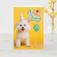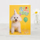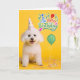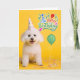Bichon Frise Dog in Party Hat on Yellow Birthday Card