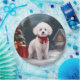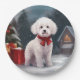 Bichon Frise Dog in Snow Christmas Paper Plate