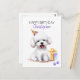 Happy Birthday with a personalised name. A cute Bichon Frise puppy dog illustration with a birthday hat and balloons. Add your own message for a personal unique card. Art made with watercolors.