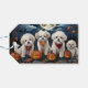 Unleash the spooky spirit with this eerie Halloween design featuring a pack of dogs under a dark, moonlit sky, surrounded by flying bats and glowing pumpkins. Perfect for those who love a touch of frightful fun with their furry friends!
