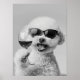 Bichon Frise Holding Wine Wall Art, Black and Whit Poster